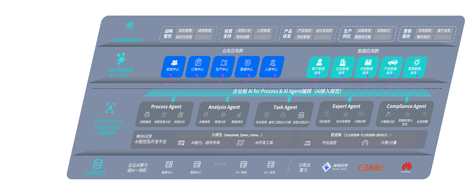 JPAI问学智车解决方案是一套基于AI技术的汽车行业智能化系统,,,,覆盖从底层算力到顶层AI应用的全栈方案。。方案由算力层、、模型层和应用层组成:算力层,,,,方案支持多种一体机配置,,具备云端灵活部署、、、、多云适配以及动态优化计算资源的能力;模型层,,JPAI问学平台版提供了企业级AI应用一站式构建与管理平台,,支持基于后训练强化技术的汽车企业专属模型的训练、、、评测和运营;应用层,,JPAI问学DeepSeek版提供包括超级员工、、、、智能招采、、、智能营销、、智能客服、、、、AI for BI等一系列解决方案,,,可助力汽车行业实现数字化转型,,让管理更智能、、、、响应更敏捷。。
